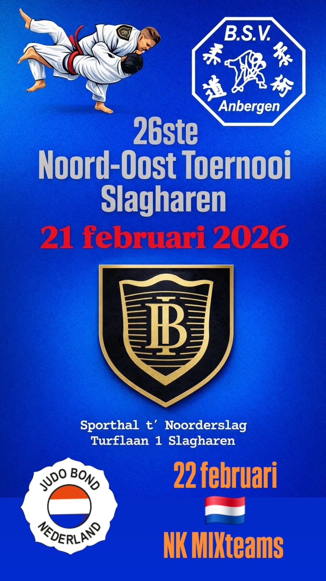 Zaterdag s ‘morgens in de vroegte naar Slagharen, bij de sporthal "De Noorderslag" aangekomen zag ik dat ik niet de enigste was, dus even zoeken naar een parkeerplaats. Bij binnentreden van de kantine zag ik een gezellige drukte en in de sporthal zelf was te zien dat de avond er voor druk gewerkt was door de vrijwilligers met hart voor de Judo. Alles stond al gereed voor een geweldig toernooi, er kon gestreden worden op 8 matten in 5 blokken.